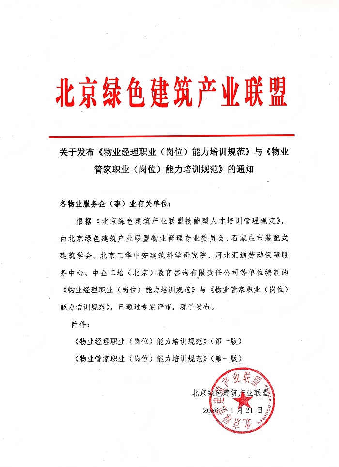 关于发布《物业经理职业(岗位)能力培训规范》与《物业管家职业(岗位)能力培训规范》的通知