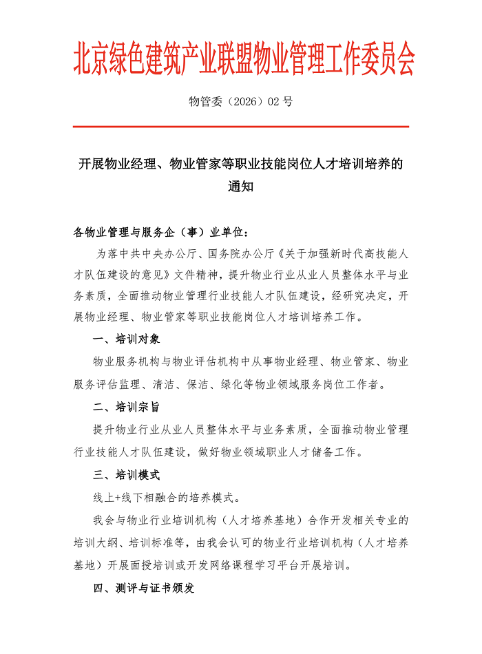 开展物业经理、物业管家等职业技能岗位人才培训培养的通知