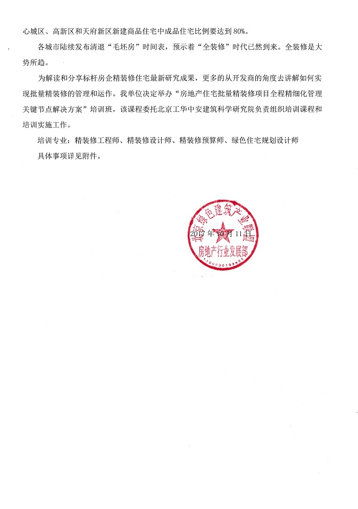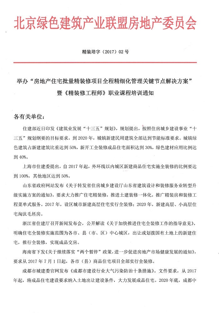 举办“精装修工程师”课程培训的通知